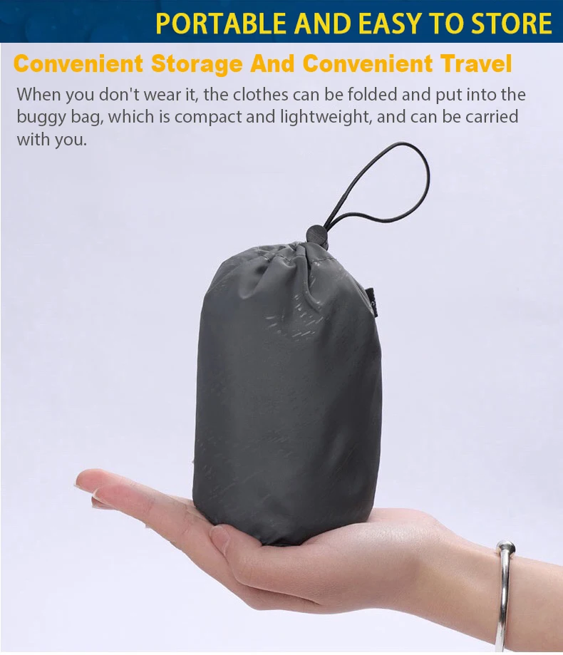 4. Ultra leve e embalável: Com tecido leve e uma bolsa de transporte convenientemente incluída, leve este casaco impermeável onde quer que vá.